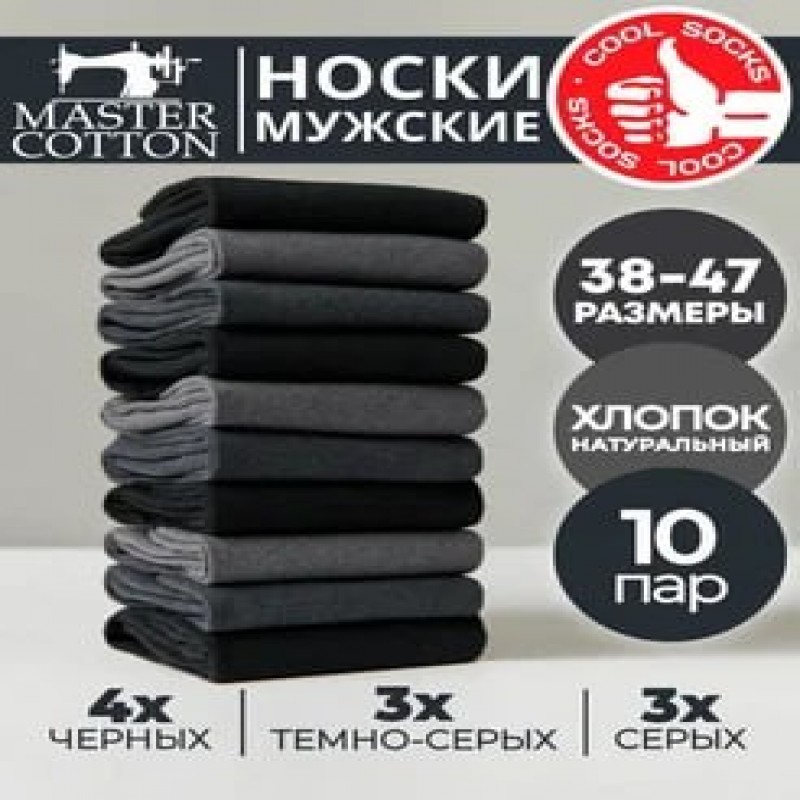 КомплектацияНоски мужские 10 пар; пакет