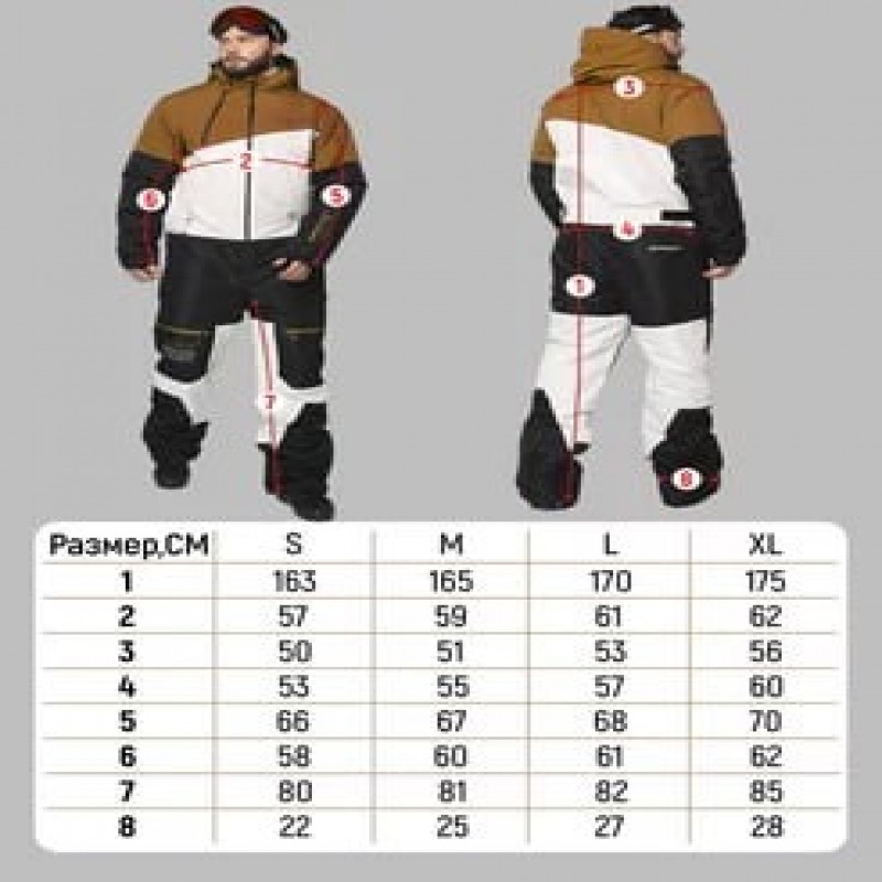 При выборе размера ориентируйтесь на таблицу размеров, она представлена в фото карусели карточки, слева. Высоко технологичный комбинезон сделает ваше пребывание на горнолыжном склоне максимально комфортным. Характеристики мембраны - водонепроницаемость 7000мм, паропроницаемость 5000гр м2 24ч. Утеплитель синтетическое био-волокно 150 гр, рукава, брючины - 120 гр. Основные характеристики - внутренние наплечные стропы, капюшон с козырьком, утягивающими кулисами и регулировкой по затылку, полностью проклеенные швы, молнии с облегченным скольжением, капюшон с регулировкой на утягивающие кулисы, внутренняя манжета в рукавах с прорезью для пальца, карман для скипасса на рукаве, функциональный, глубокий внутренний карман, один глубокий нагрудный внешний кармана закрытый планкой на липучке, один боковой карман на молнии, и два накладных кармана на штанинах и один задний карман, вентиляция верха и брючин, снегозащита низа брючин, регулировка брюк под обувь, также имеет молнию разделяющую верхнюю область и область брючин при необходимости, карманы с защитой от попадания внутрь снега и утеплением внутри. Бомболюк (гигиеническая молния) по большей окружности комбинезона. Внутренние снегозащитные гетры с прорезиненной эластичной лентой для лучшей фиксации на ботинках и защиты от попадания снега. Молнии на голенях для удобства снятия и одевания ботинок, закрепляются липучкой. Низ штанин комбинезон непромокайка усилен с внутренней стороны износостойкой тканью, устойчивой к порезам кантами. Все внешние молнии влагозащитные. Модель имеет широкий, свободный крой оверсайз, но регулируется по талии, идеальна для горных лыж и сноубординга, рассчитана на температурный режим от 0 до -25. Купить горнолыжный комбинезон мужской можно для занятия спортом, повседневной носки, горными лыжами и сноубордом, катании на коньках, с горок на тюбинге, поездках на квадроциклах и снегоходах и других видов спорта, туризма и как прогулочный в городе.